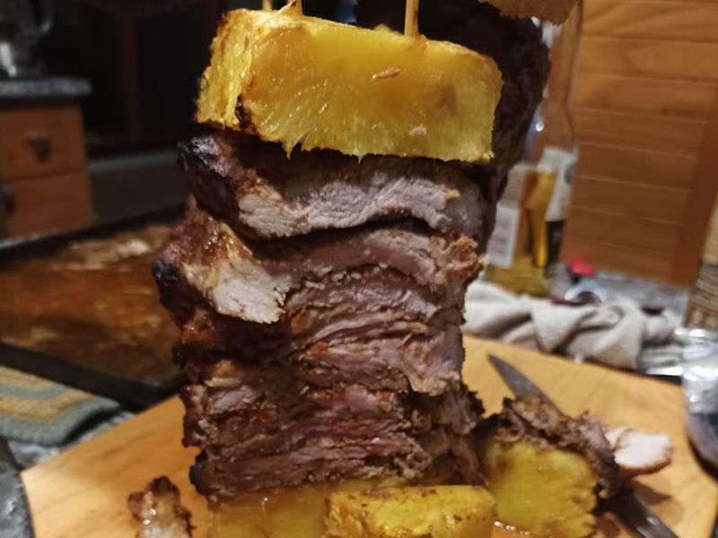 Deliciosos tacos de puerco marinado con especias y piña asada.