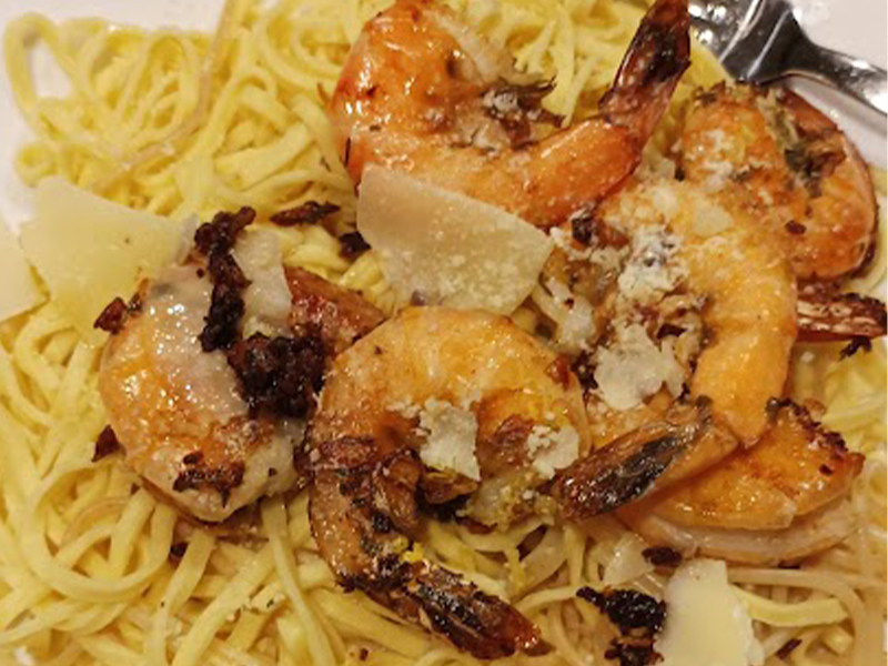 Delicioso linguine con scampi, una combinación sabrosa de camarones, ajo y limón. Esta es una receta de mi suegrita Bonnie, muchas gracias por compartirla con nosotros:D