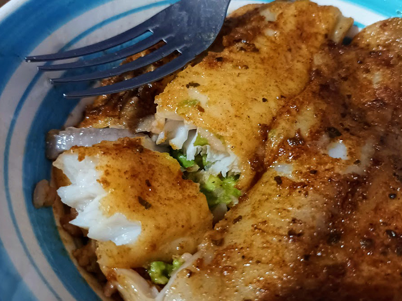 Pescado horneado al estilo papillot, que significa cocción del alimento en un envoltorio resistente al calor, en este caso aluminio.