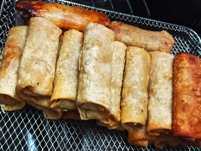 Rollitos fritos rellenos de diferentes verduras picadas al estilo juliana y carne molida.