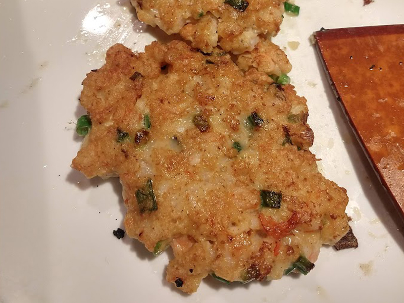 Pancakes de camarón con salsa de chile dulce. Este bocadillo chino está lleno de camarones jugosos y crujientes, y se sirve con una salsa de chile dulce y picante.