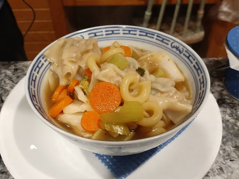 Una deliciosa sopa de wontons rellenos de cerdo y camarones, perfectamente condimentados y servidos en un caldo de pollo aromático. Esta es una receta de mi suegrita Bonnie, muchas gracias por compartirla con nosotros:D.